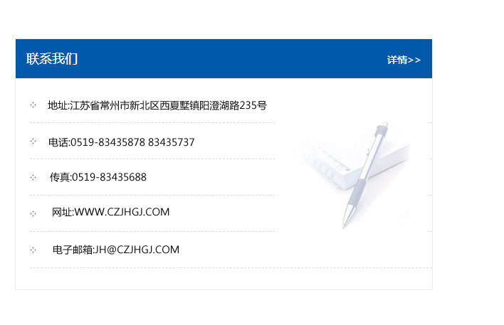 傳真:0519-83435688    郵編:213135    網址:WWW.czjhgj_com.guhuatal.com    電子郵箱:JH@czjhgj_com.guhuatal.com